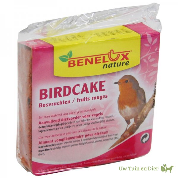 Met de Birdcake Bosvruchten van Benelux Nature kunt u op een eenvoudige en verantwoorde manier bijdragen aan het welzijn van de natuurvogels in uw omgeving. Verrijk uw tuin met deze smakelijke traktatie en geniet van het prachtige schouwspel van vogels die zich tegoed doen aan deze voedzame lekkernij.