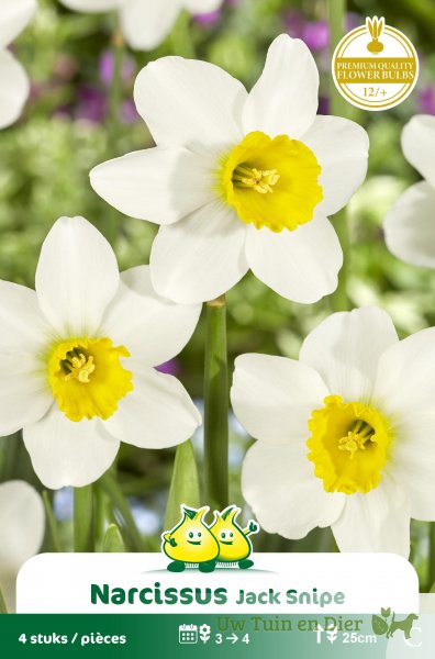 Breng het voorjaar in je tuin met deze charmante botanische narcissen! De Narcis ‘Jack Snipe’ staat bekend om zijn elegante wit-gele bloemen met een frisse uitstraling. Dankzij hun compacte groei (ca. 20–25 cm hoog) zijn ze perfect voor borders, rotstuinen, bloempotten of natuurlijke beplanting in het gazon.