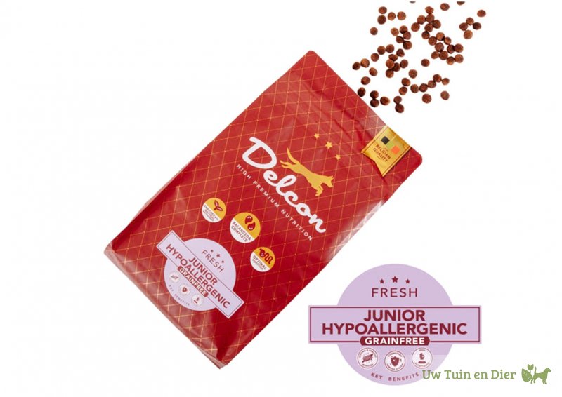 Geef je pup de liefdevolle start die hij verdient met Delcon Junior Hypoallergeen – gezonde voeding, met zorg gemaakt voor jouw beste vriend.