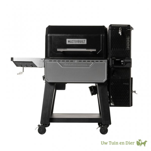 De Masterbuilt Gravity houtskoolgrill combineert de authentieke houtskoolsmaak met slimme, digitale bedieningstechnologie. Het topmodel in deze serie is de Masterbuilt Gravity XT. Deze werkt op houtskool of briketten, die in de aan de zijkant gemonteerde, zwaartekrachtgevoede houtskooltrechter worden geladen – vergelijkbaar met een pelletgrill. Zodra de houtskool of briketten zijn aangestoken, worden ze continu in de trechter gevoerd, waardoor een constante temperatuur wordt gehandhaafd. Een ventilator helpt dit proces door de hete houtskool te verspreiden en de warmte onder het kookoppervlak te richten.