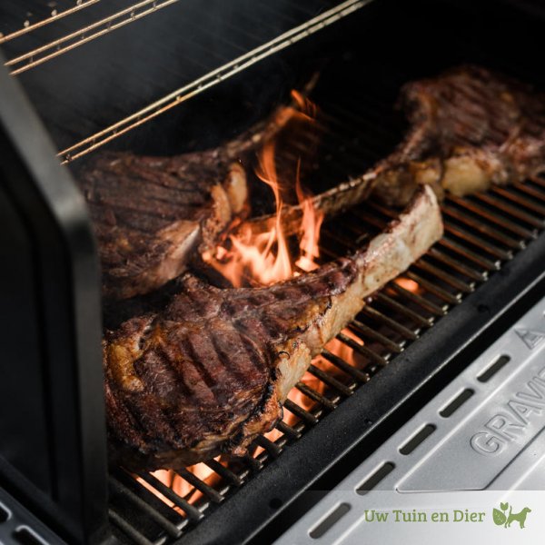 Met het geavanceerde digitale besturingssysteem kunt u de temperatuur nauwkeurig regelen tussen 82°C en 370°C – of u nu langzaam wilt garen of dichtschroeien. Dankzij wifi-technologie en de Masterbuilt-app kunt u uw grill gemakkelijk overal bedienen en nieuwe recepten en tips ontdekken. De elegante roestvrijstalen grillroosters en de meerlaagse rookrekken bieden voldoende ruimte voor grote barbecues, terwijl praktische planken en haken voor extra gemak zorgen.