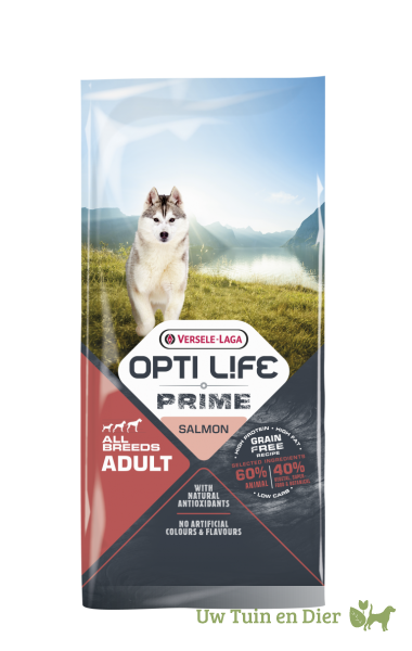 Met Opti Life Prime Adult Salmon geef je jouw hond een bijzonder rijke en heerlijke premium maaltijd, boordevol krachtige voedingsstoffen. Ons graanvrij recept is rijk aan eiwitten en vetten, en arm aan koolhydraten, met de ideale mix van de meest hoogwaardige, smakelijke en natuurlijke ingrediënten voor een dag vol avontuur.