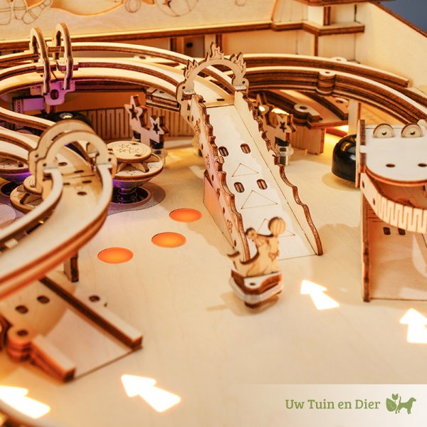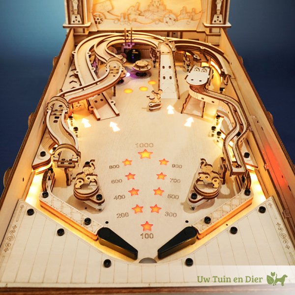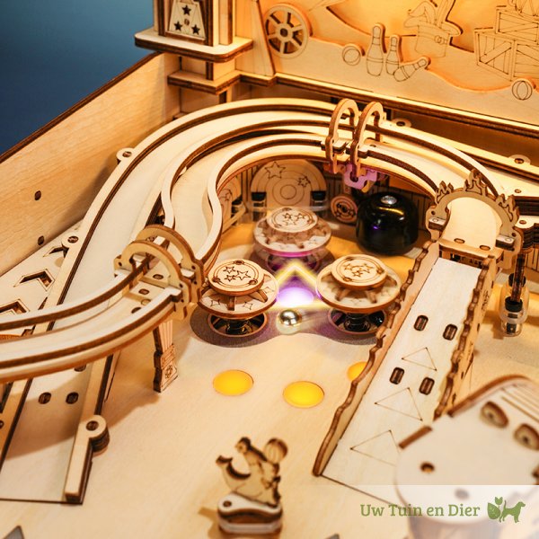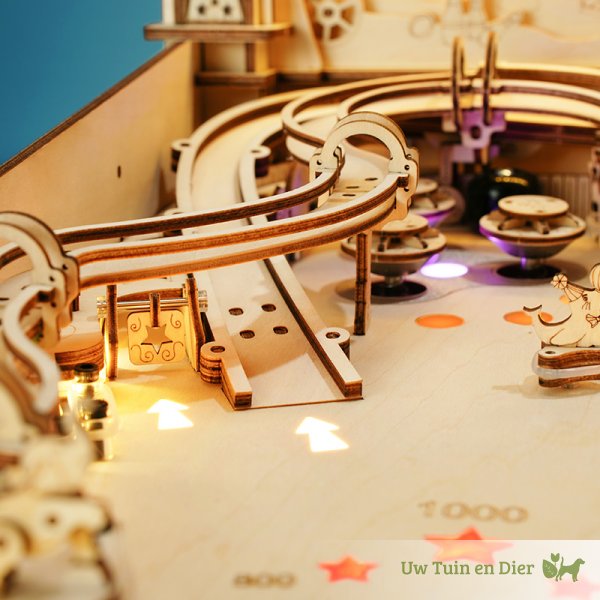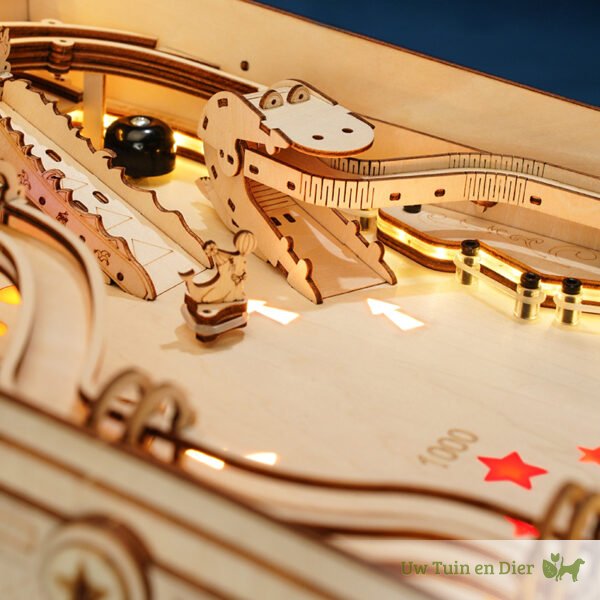 Dit is een absolute eyecatcher, een meesterstuk in je kamer. Niemand die hier voorbij kan lopen. Kun je er tegen om vaak de vraag te krijgen: “Mag hij even aan?”, want iedereen wil wel een potje spelen bij dit houten bouwpakket. Je klassieke flipperkast heeft als thema het circus. Daarmee zet deze pinballmachine gelijk een nostalgische aantrekkingskracht neer. Olifanten, tinnen soldaatjes en een draaiende zeehond met een bal op zijn neus, dragen daar aan bij. Je hebt drie banen waar je de kogels in kunt schieten. Zorg dat de bal veel tegen de drie targets aankomt en zet je eigen highscore!