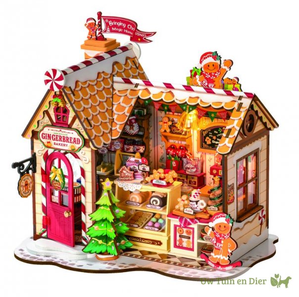 Breng de magie van de feestdagen tot leven met het Robotime Gingerbread House! Dit sfeervolle houten doe-het-zelf miniatuurhuisje is tot in de kleinste details uitgewerkt en vormt een prachtig decorstuk voor kerst. Bouw stap voor stap je eigen peperkoekhuisje, compleet met vrolijke kleuren, snoepdetails en warm licht dankzij de ingebouwde LED-verlichting.